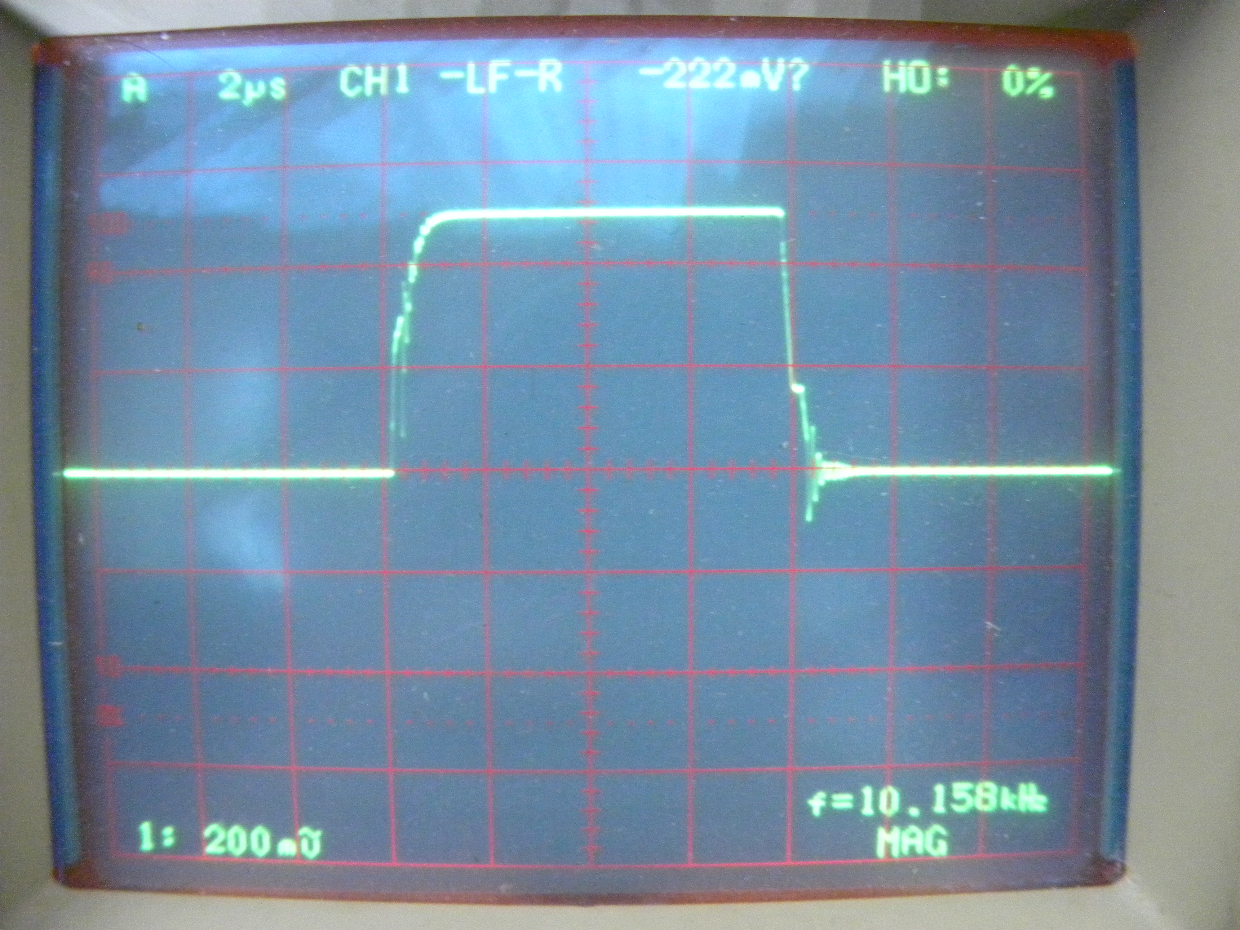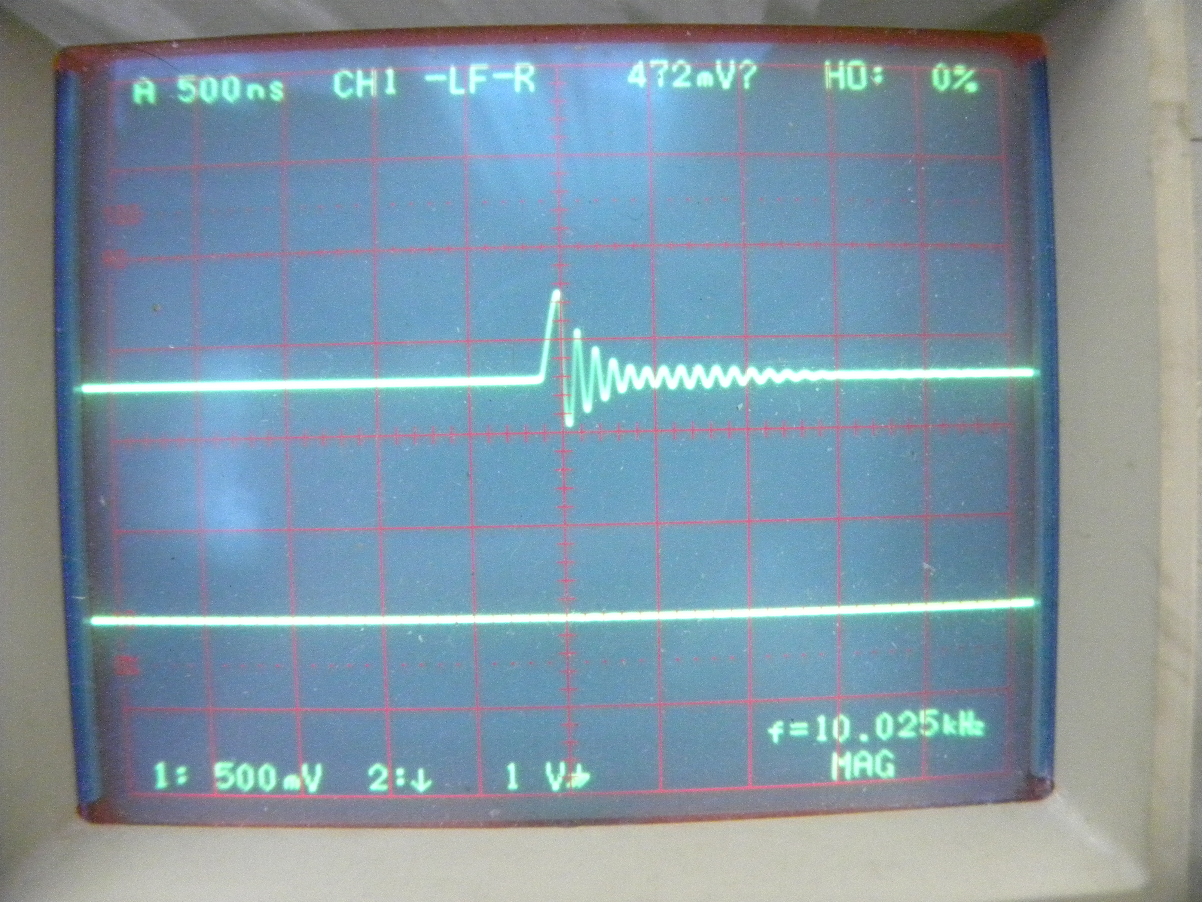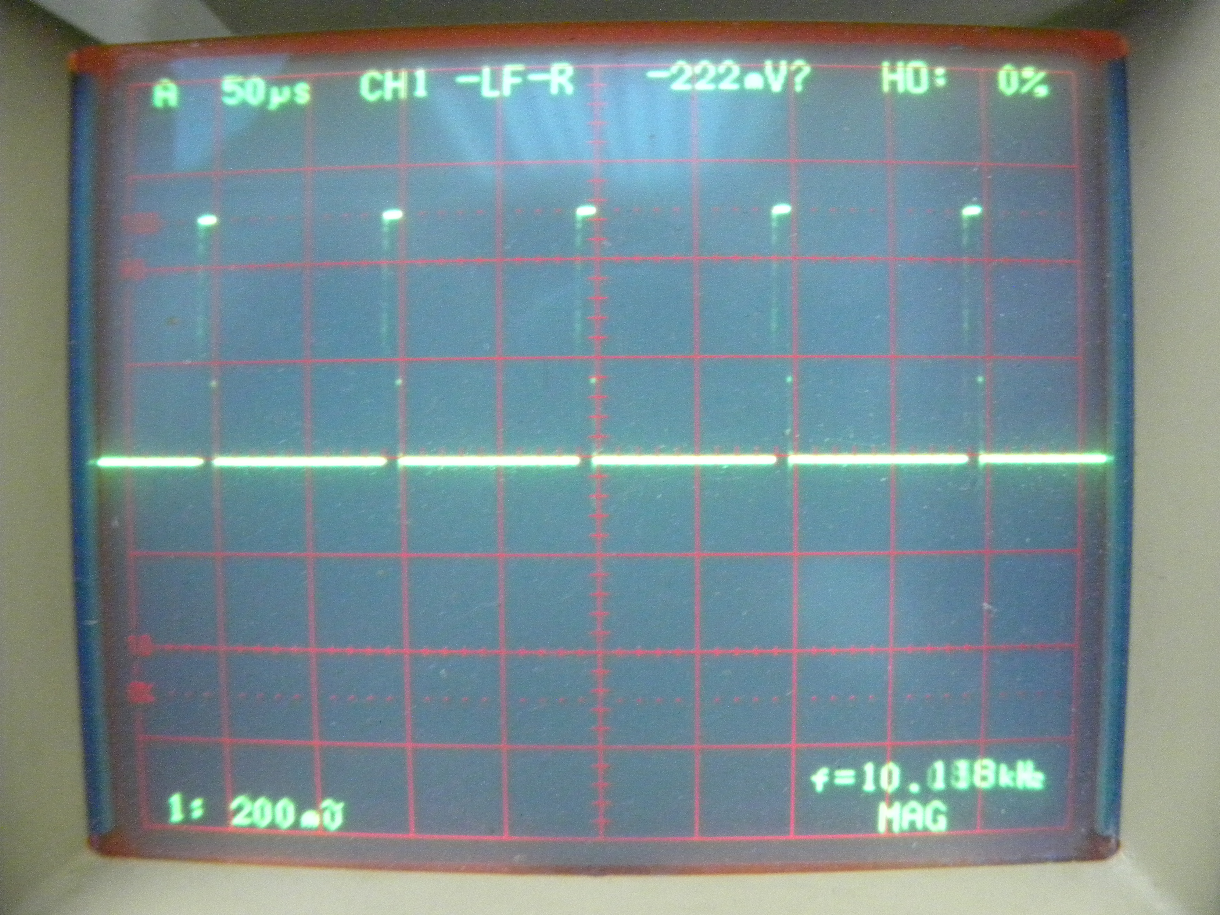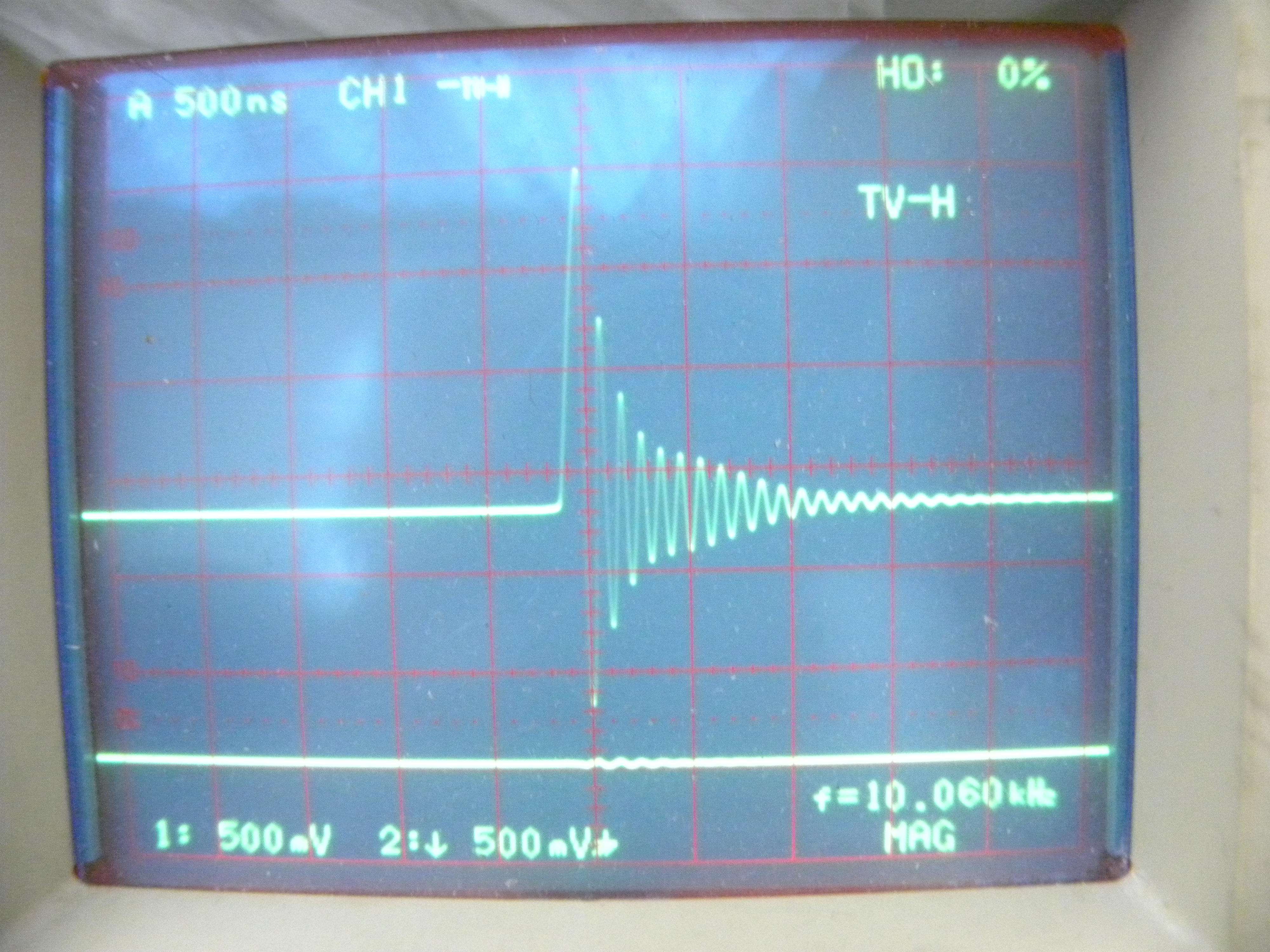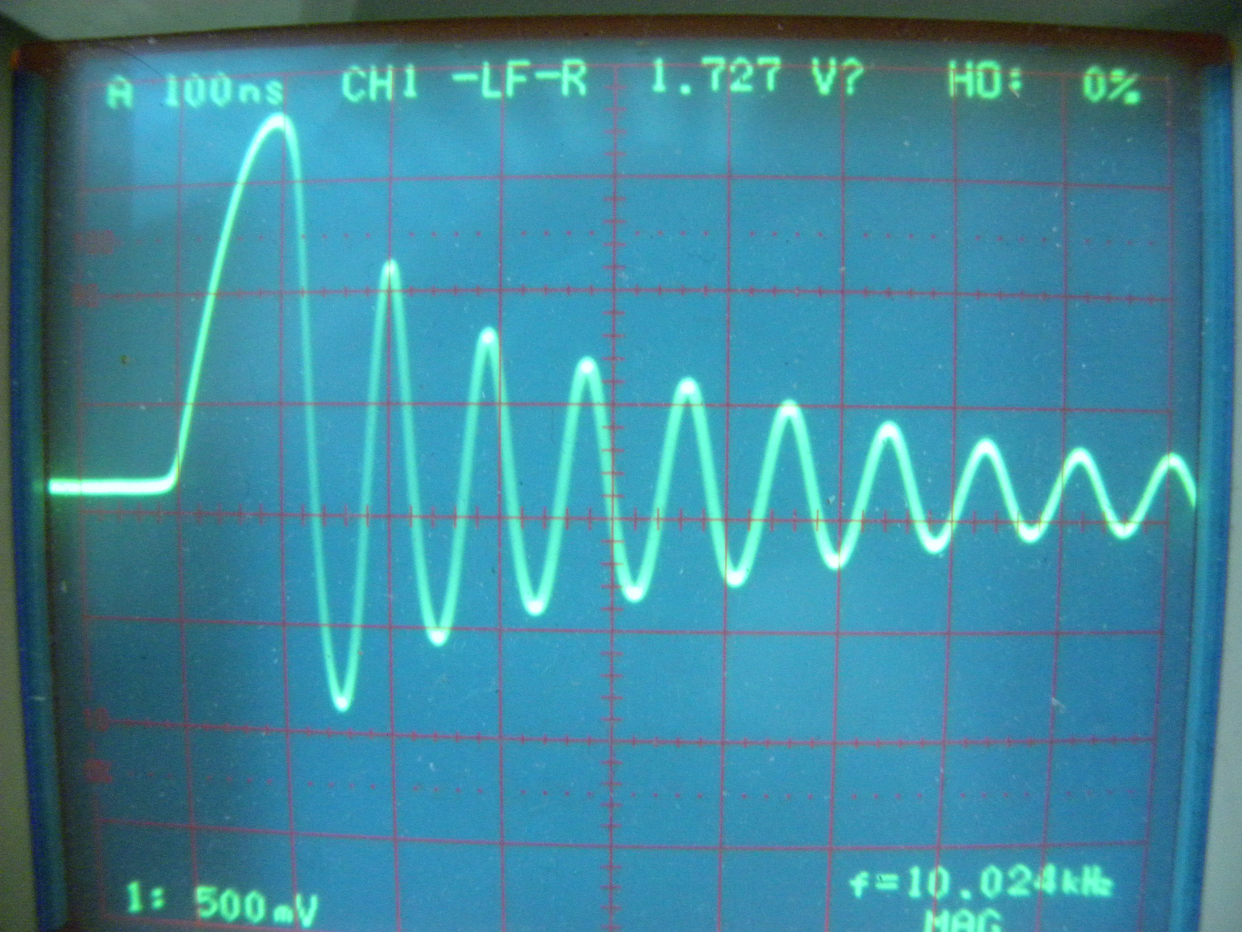 次の写真でその調整状態でのオシロスコープの波形を表示します。