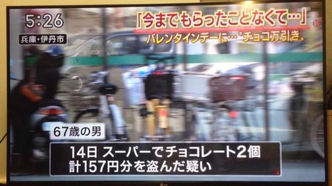 「今までもらったことなくて…」チョコ万引き男逮捕wwwwwwwwwwww