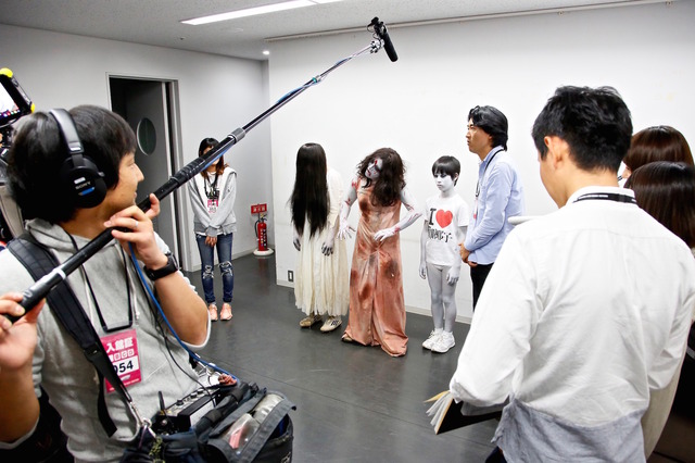 山本美月と玉城ティナが出演し、日本を代表する2大ホラーキャラクターが共演&対決する話題作『貞子vs伽椰子』。いよいよ公開間近となったが、本日1日(水)、北海道・札幌ドームにて行われた、北海道日本ハムファイターズ×東京ヤクルトスワローズ戦にて、貞子、伽椰子、俊雄が登場し、始球式イベントを行った。