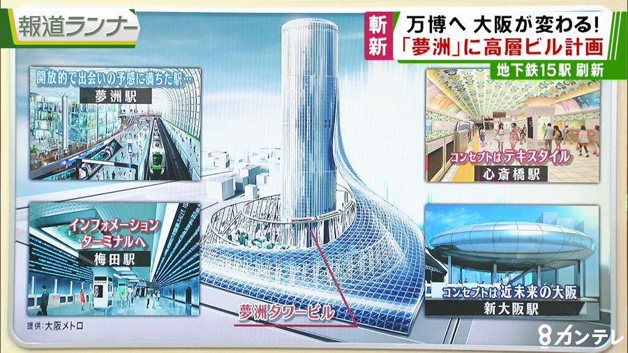 地下鉄中央線を延伸してできる夢洲駅(仮称)に直結した超高層タワービルを建設する構想を発表した。