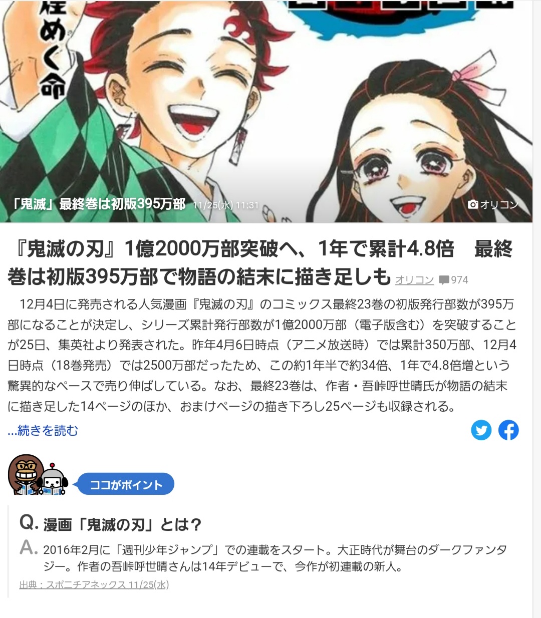 【悲報】鬼滅最終巻の初版、ワンピース越えならずwwwwwwwwwwwww