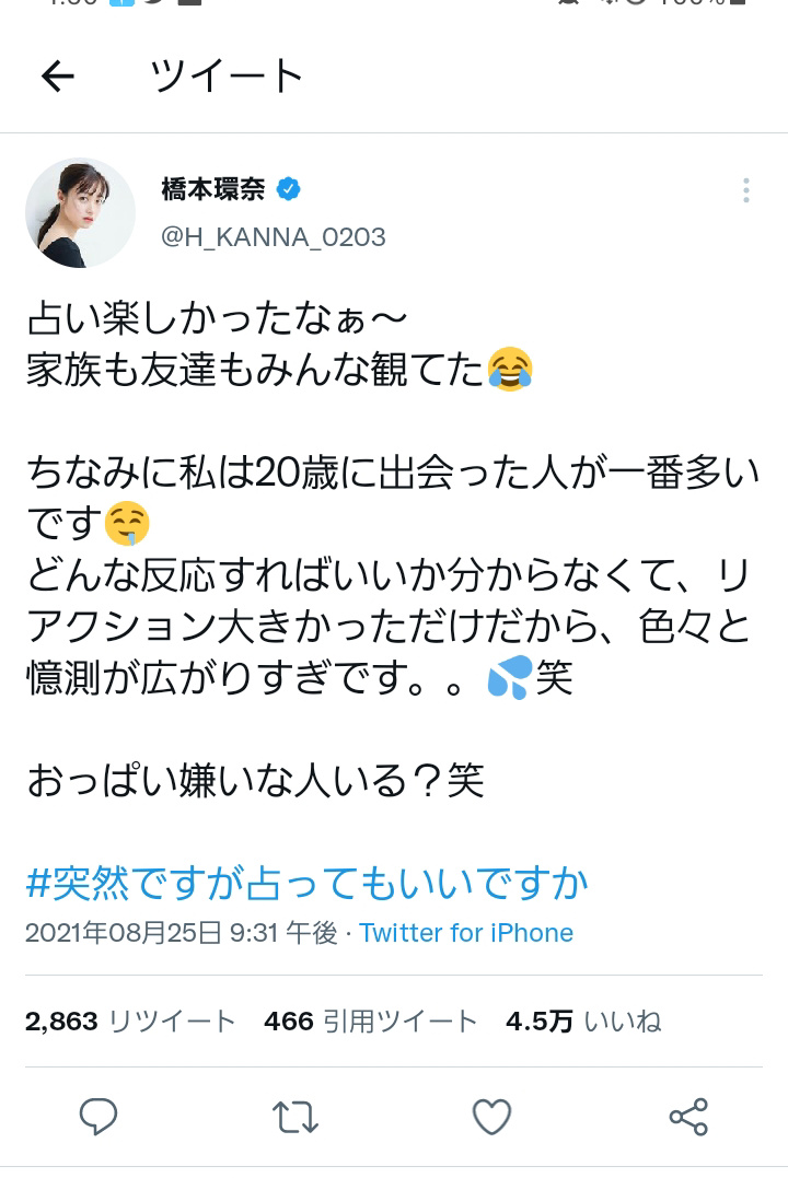 【画像】橋本環奈が唐突にツイート「おっぱい嫌いな人いる?」